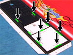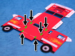 「荷台」を切って、左の写真のみどりの線に切れ目を入れます。