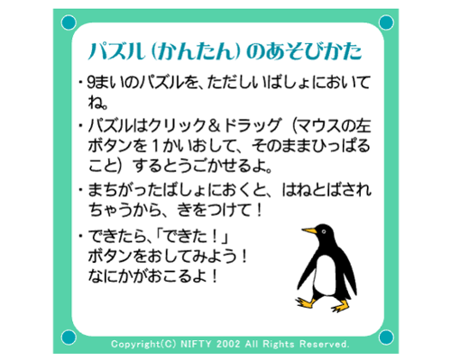 9枚のパズルを正しい向きで正しい場所に置こう!