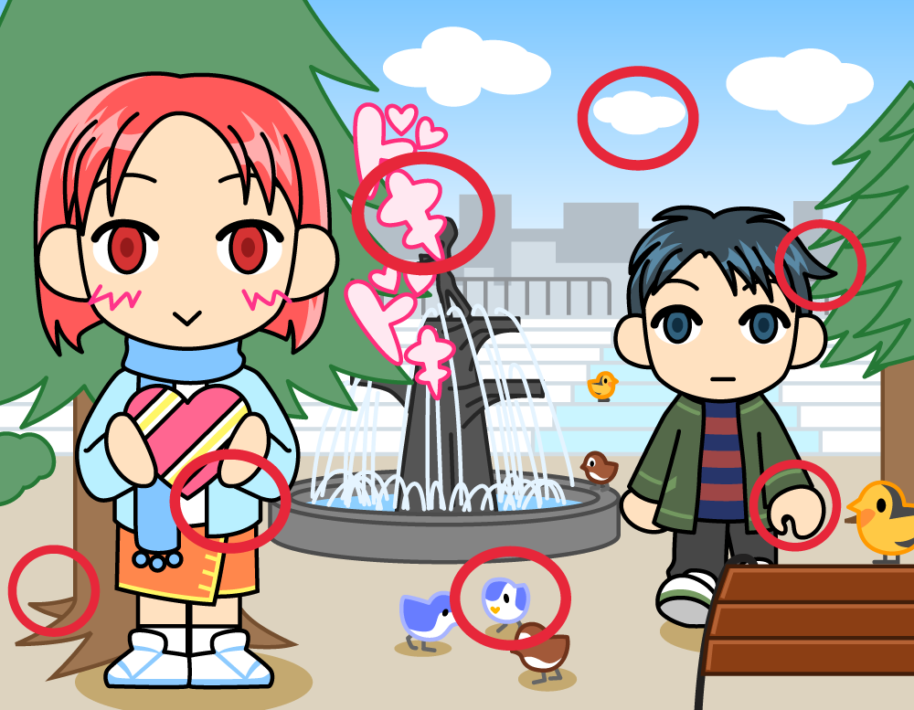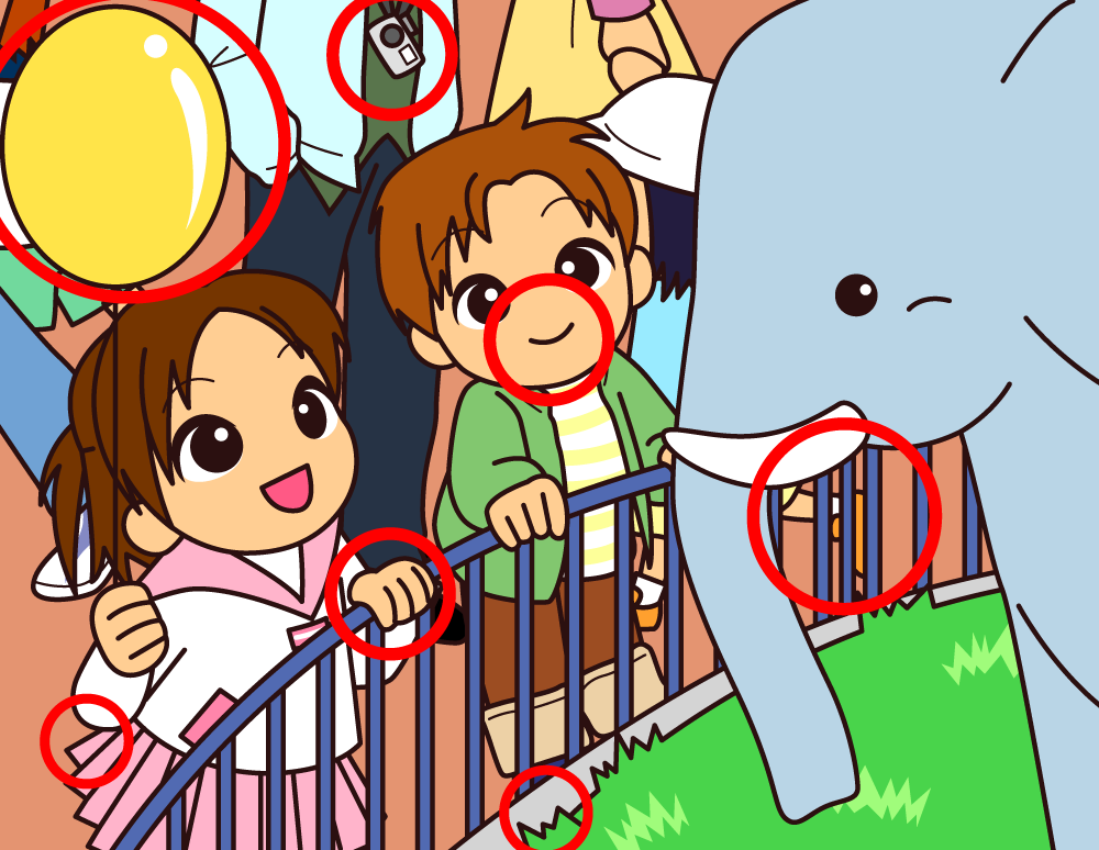 ふたつの絵を見くらべて、ちがうところを7つ見つけよう!