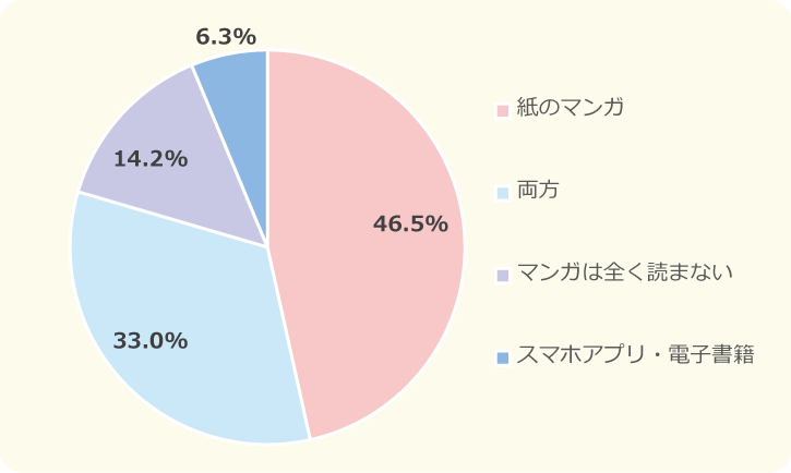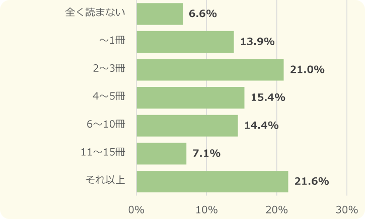 1カ月に「2~3冊」のペースでマンガを読む人が多いね!21.9%をしめていました。「全く読まない」という人もいるけど、3位には「16冊以上」がランクインしていたよ!1カ月月に16冊以上はすごい…!キッズスタッフも、そこまでの量を読めたことはないかもしれません。