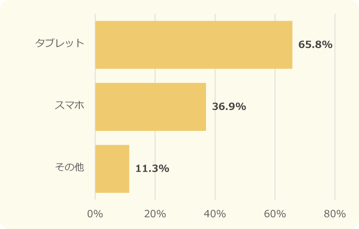 小学生では「タブレット」が大多数だったけど、中学生では「スマホ」と「タブレット」がどちらも半数以上をこえていたよ!中学生になって、スマホを持つ人がふえたからなのかな~と思いました!